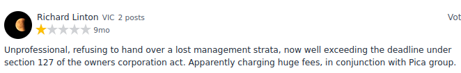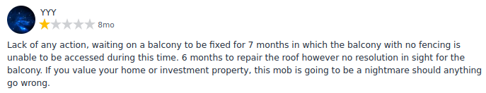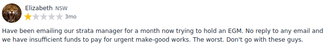 For those who do not have time to research it themselves, here are some selective comments (quoted as per customer's own statements) from ProductReview website (screenshots obtained under Australian fair dealing for the purpose of research, study, investigative journalism in area of strata events and compliance with strata regulations):