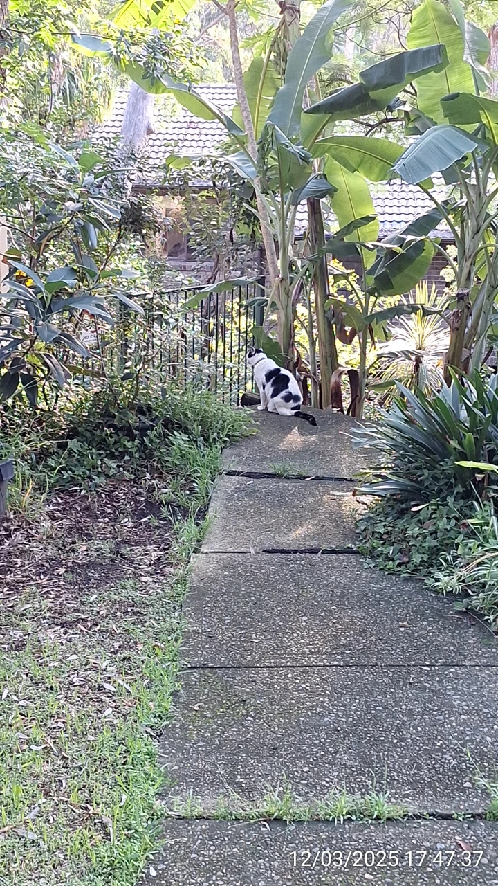 Cat was observed freely roaming in the complex behind townhouses on 12 March 2025: